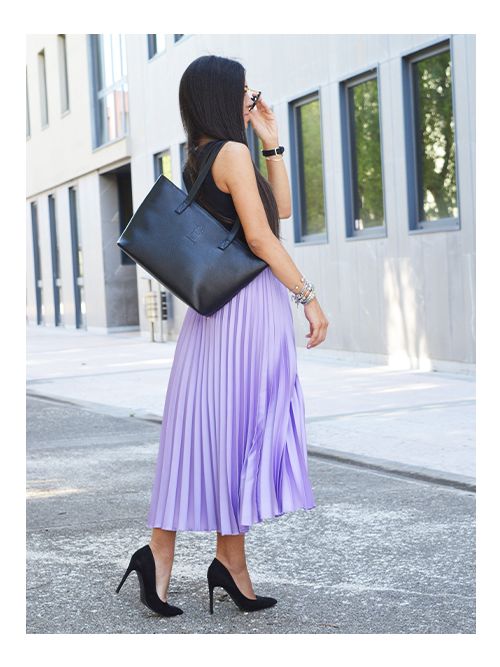 Woman handbag 42cm in black leather designed and handmade in Italy